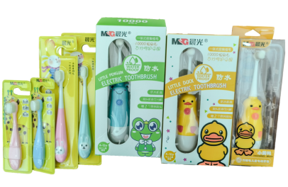 与晨光公司商标的组成要素、组合方式高度相似,仅在字母“M”和“G”的连接方式上略有差异,使用了一支牙刷连接在字母中间。两个商标的视觉差别细微,构成近似。同时,晨光公司的文具产品的主要消费群体是少年儿童,与被诉商品儿童牙刷的目标消费群体基本重合(图8)。这很容易使消费者混淆,误以为被诉商品与晨光公司有关联关系。