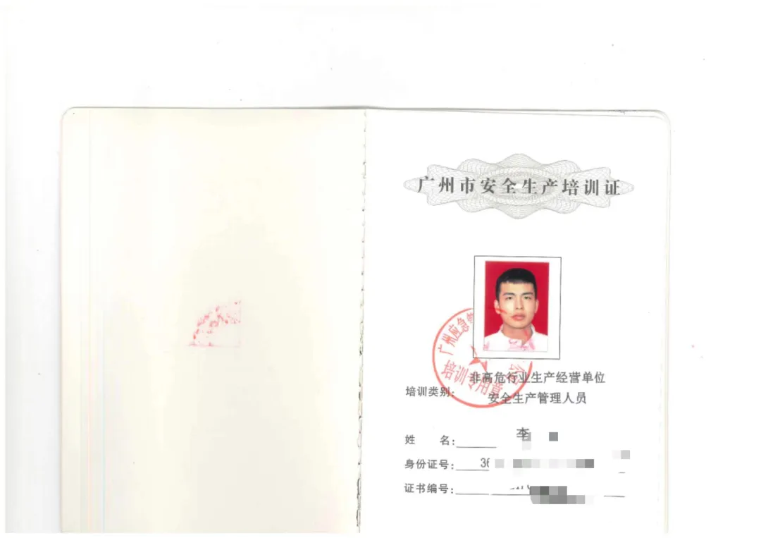 加盖公司公章的附件一《广东省安全生产业务学习申请表》