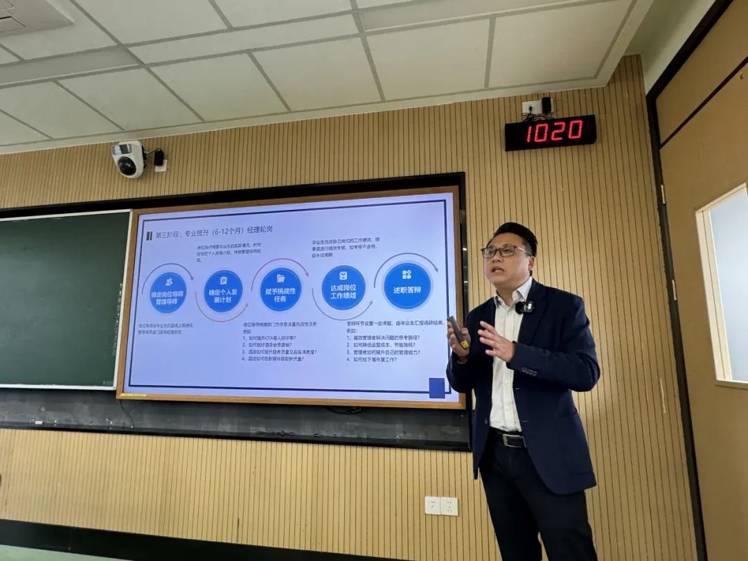随后,蔡总介绍了由浙大城市学院与君亭酒店集团携手共同打造的“造星计划”以及酒店经理的各阶段培训课程,引发了同学们对职业规划的深入思考,使同学们对未来职业发展有了更加明确的方向与思路。