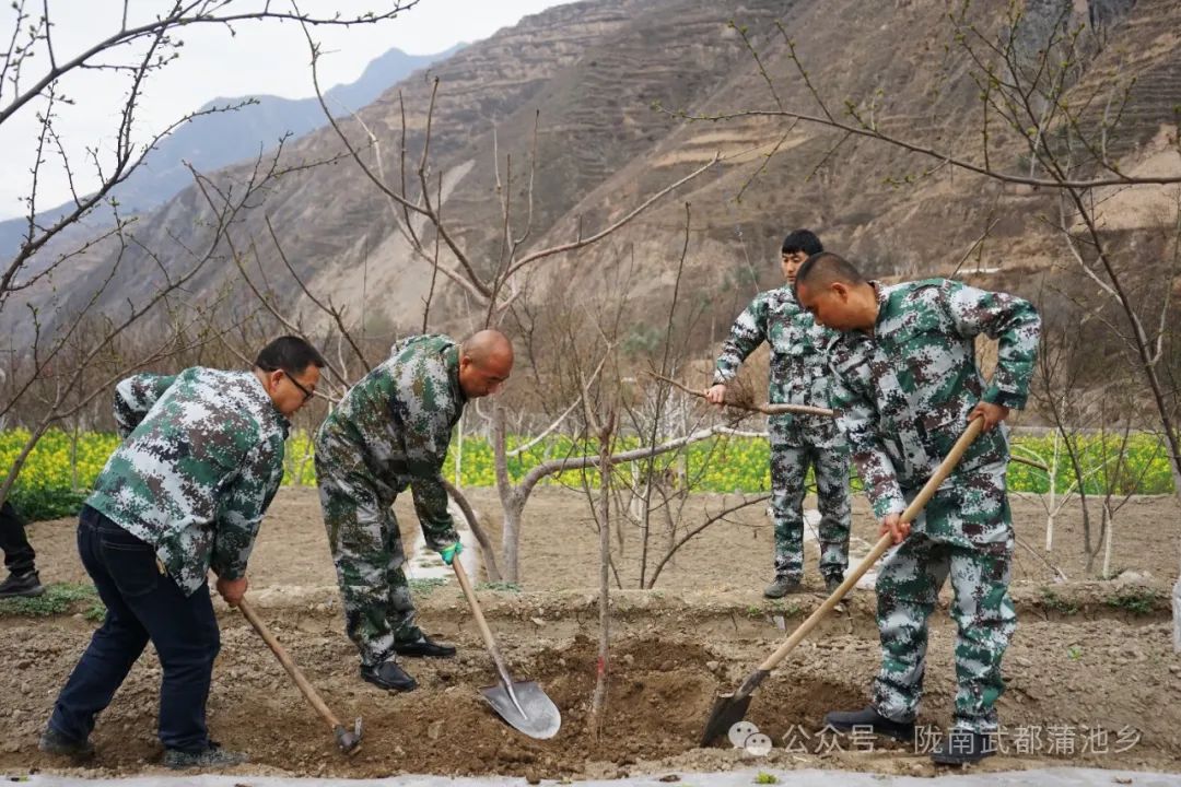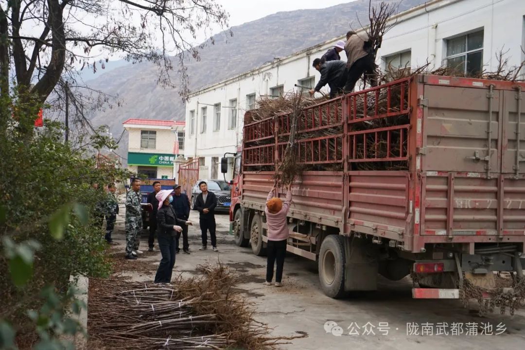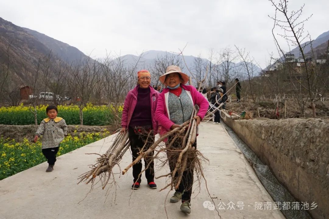 栽植现场,领导干部带头示范,大家纷纷行动起来,运苗、分发、修剪、挖坑、添土、浇水......各个环节井然有序、协作紧密,田间地头尽显一幅繁忙的劳动景象。