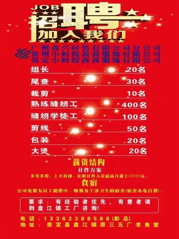 【就业招聘】贵定小蚂蚁茜茜服饰有限公司