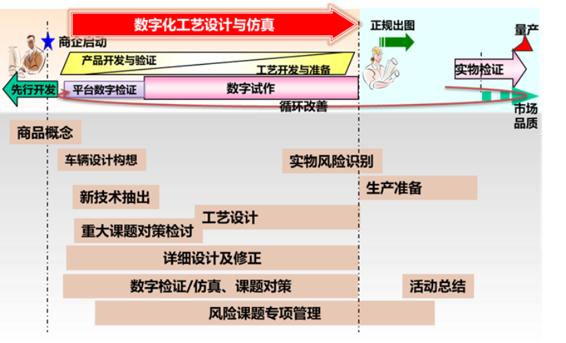 实施数字化工艺设计与仿真,可以促进新车型准备过程各项指标的提升,主要包括: