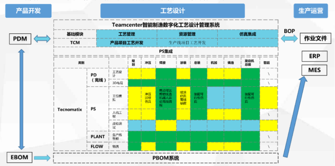 长安汽车基于Teamcenter智能制造数字化工艺设计管理系统,集成Tecnomatix仿真软件,包括PD、PS、Plant、Flow工具模块,实现产品冲压、焊接、涂装、总装等数字化工艺设计与仿真。如图4所示。