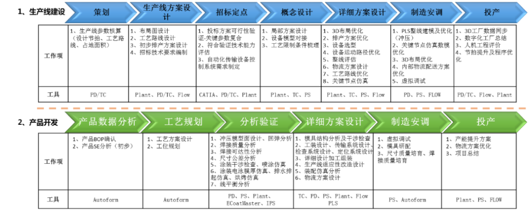 1)将各工程在数字化工艺设计与仿真不同阶段的业务内容进行全面梳理,明确线上、线下工作内容;