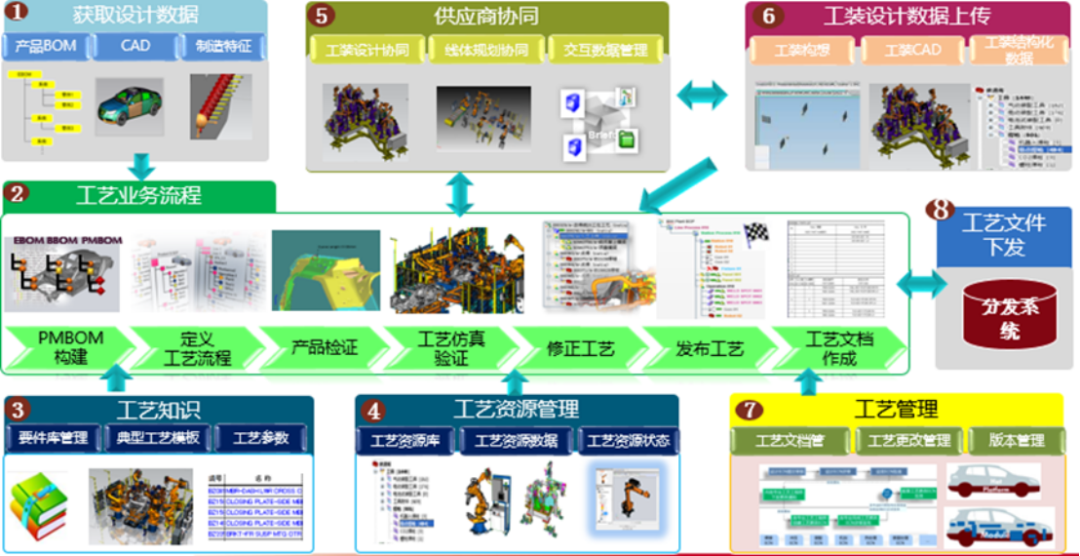 (2)资源管理:集成BOM、PDM平台,建立符合工艺的3D数据结构树,建立统一的数据管理平台,实现基于产品数据、制造数据、工艺标准的工艺设计过程;