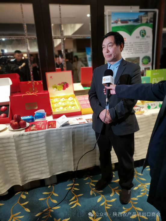 杨跃国会长在现场采访中表示,我们商会是陕西省唯一涉农国际贸易服务机构,为推进更多的企业“走出去”,我们将建设外综服平台,并与相关企业联系建设海外仓,服务于有产品、有意向走出去的企业更好地与中亚、东南亚企业对接落地。今天的对接会,我们商会组织了多家协会企业参加,与马来西亚、吉尔吉斯坦、乌兹别克斯坦等相关企业对接、交流并签约,相信通过这次对接会,能极大地促进陕西省进出口业务再上一个台阶。