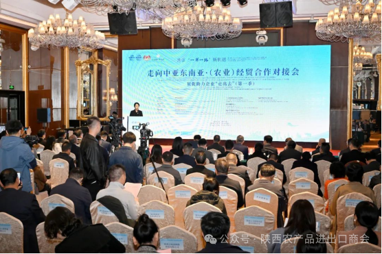 陕西省农产品进出口商会会长杨跃国受邀出席3月26日在西安举办的走向中亚东南亚农业经贸合作对接会,该对接会以会议+展示+洽谈形式进行,促成配对洽谈超过500对次,现场签订合作协议9项。商会秘书处邀请30位会员代表参加对接会,15家会员单位参加展示活动,商会及会员企业共签订合作协议计意向5份。