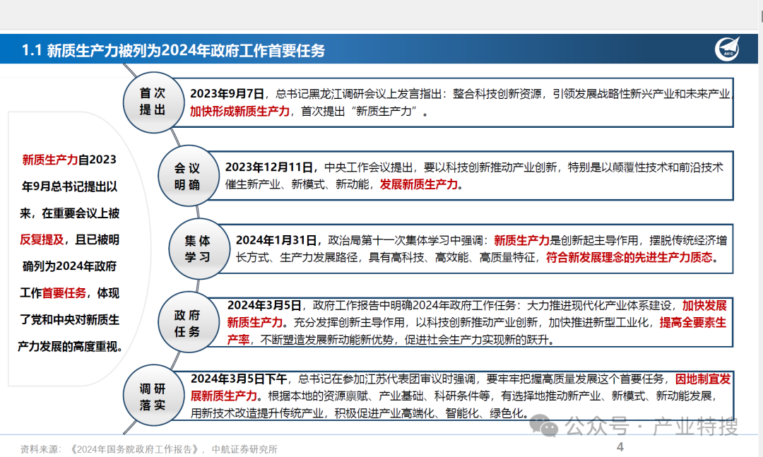 - 政府将新质生产力列为首项任务,人形机器人等新兴产业将成为经济增长新引擎。