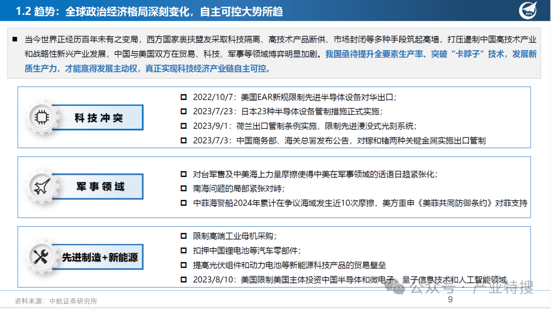 - 新变局:自主可控和出口链的重要性提升,制造业向高端化迈进。