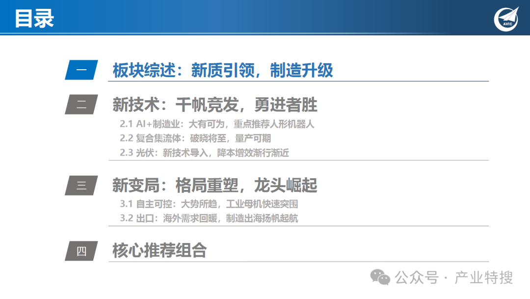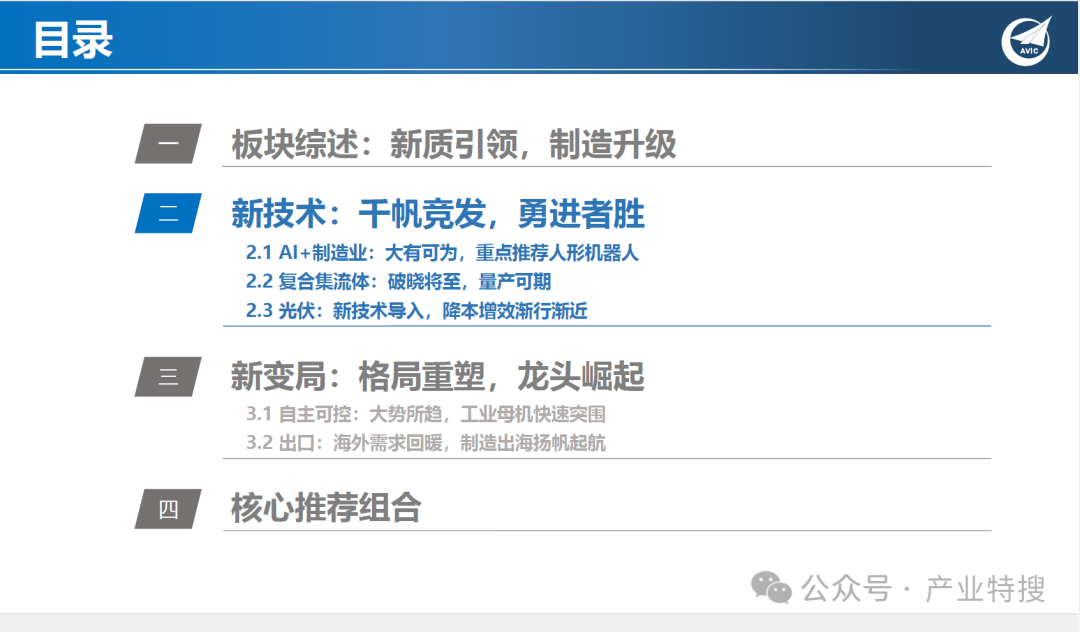 - 新技术:AI赋能制造业、专用设备新技术方向(如复合集流体、光伏新技术)。