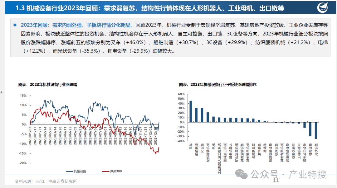 这份文件是一份由中航证券研究所发布的关于机械行业年度策略的研究报告,标题为“机械行业年度策略:向新而生,破局而立”,发布日期为2024年3月19日。报告主要内容包括: