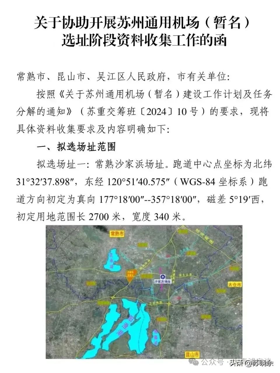 另外,网络还流传有一份官方文件,即关于协助开展苏州通用机场(暂名)选址阶段资料收集工作的函。