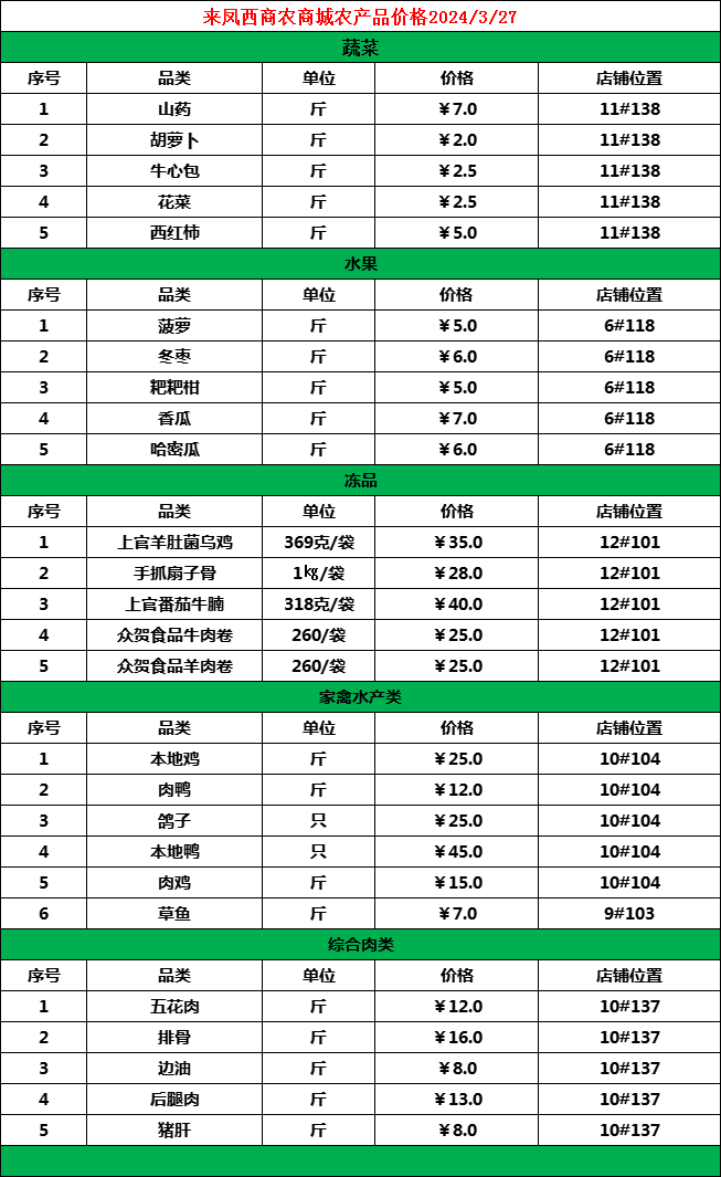 据农业农村部监测,3月26日“农产品批发价格200指数”为123.40,比前天下降0.08个点,“菜篮子”产品批发价格指数为124.61,比前天下降0.09个点。截至昨日14:00时,全国农产品批发市场猪肉平均价格为20.53元/公斤,比前天上升1.3%;牛肉68.46元/公斤,比前天上升0.6%;羊肉63.92元/公斤,比前天上升0.7%;鸡蛋8.47元/公斤,比前天下降1.4%;白条鸡17.69元/公斤,比前天下降0.8%。重点监测的28种蔬菜平均价格为5.06元/公斤,比前天下降1.0%;重点监测的6种水果平均价格为7.43元/公斤,比前天下降0.5%。鲫鱼18.57元/公斤,比前天下降0.5%;鲤鱼14.45元/公斤,比前天下降1.0%;白鲢鱼9.83元/公斤,比前天上升0.5%;大带鱼41.63元/公斤,比前天上升4.0%。