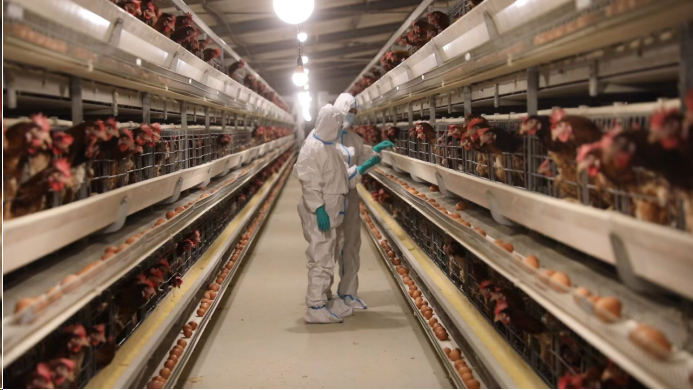 张炉集源林养殖有限公司是817肉鸡父母代蛋鸡场,现存栏蛋鸡4.3万羽。春季天气忽冷忽热,昼夜温差大,容易对鸡体产生强烈的应激,降低鸡体免疫机能和抗病能力。两位专家通过察看鸡群精神状态、粪便以及鸡蛋外观等状况,对春季易流行的禽流感、新城疫、传染性支气管炎等疫病进行了防控指导。