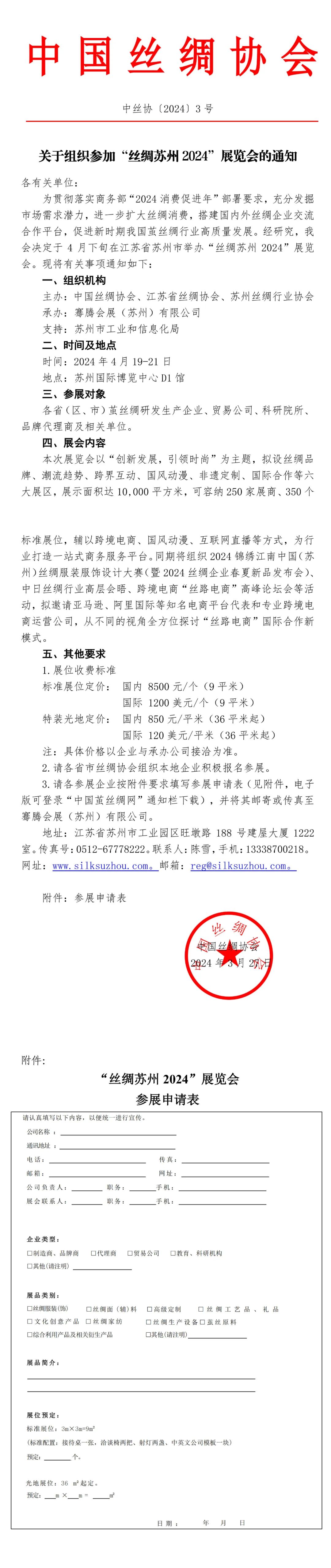 关于组织参加“丝绸苏州2024”展览会的通知