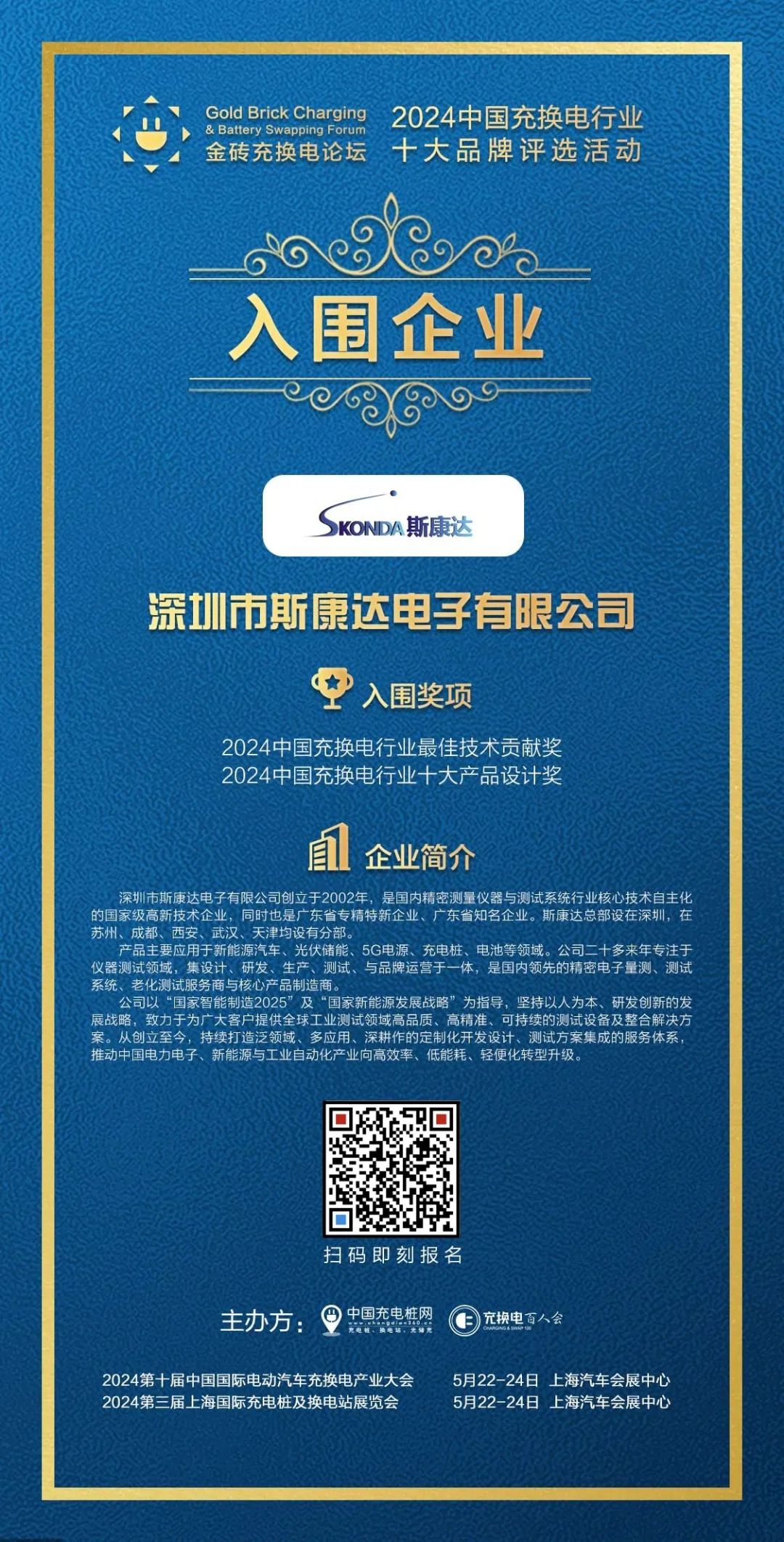 好消息!斯康达入围:2024中国充换电行业十大品牌评选
