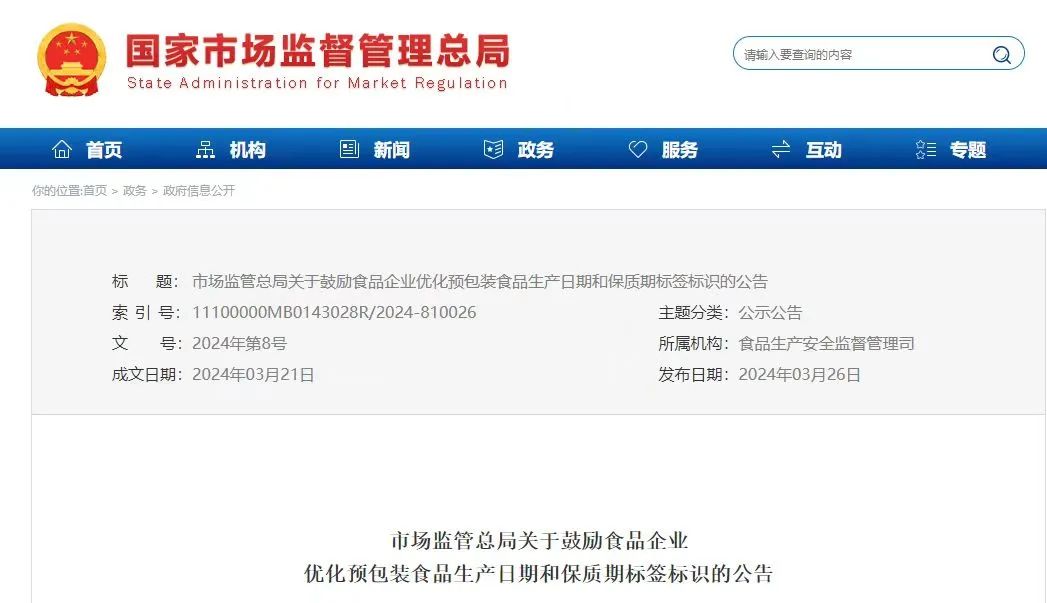 市场监管总局关于鼓励食品企业优化预包装食品生产日期和保质期