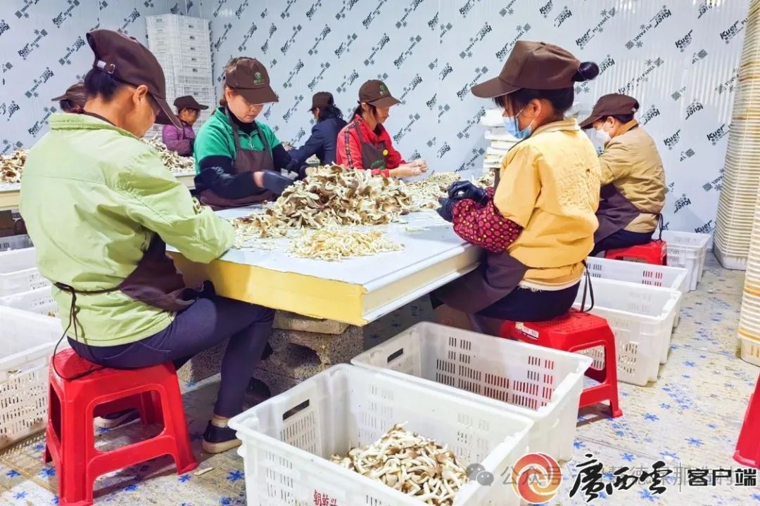 工人在分拣秀珍菇。通讯员 黎榕 摄