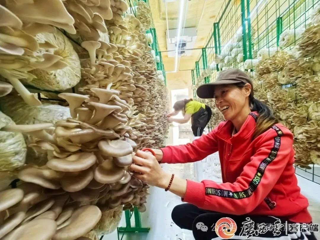 采收秀珍菇。通讯员 李淑萍 摄