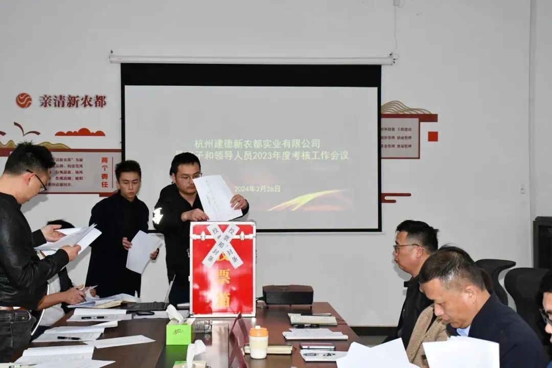 3月26日下午,建德新农都公司召开2023年度领导班子和领导人员考核工作会议。新农都控股集团党委组织部(人力资源部)副经理陈燕萍、公司领导班子成员、中层干部及在企全体职工参加会议。