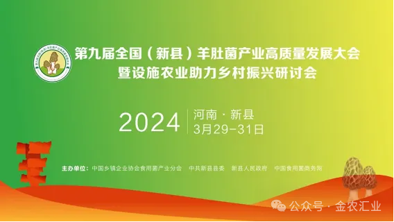 2024年3月29日-31日,由中国乡镇企业协会食用菌产业分会、中国食用菌商务网,中共新县县委、新县人民政府主办,新县农业农村局,中共新县陡山河乡党委、陡山河乡人民政府等联合承办的“第九届全国(新县)羊肚菌产业高质量发展大会暨设施农业助力乡村振兴研讨会”将在河南新县举办。