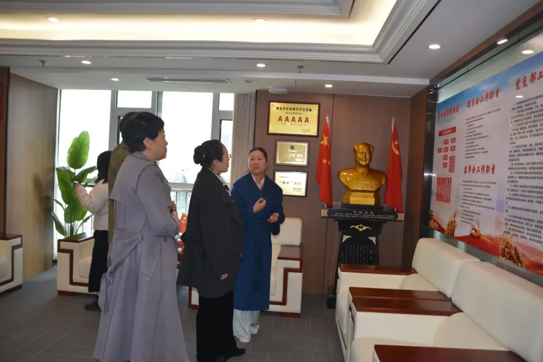 一行人通过参观李沧商会会客厅,观看介绍视频全面了解了会客厅的软硬件设施建设和运作情况,区委统战部副部长、区工商联党组书记韩锡涛介绍了商会会客厅的发展历程,汇报了会客厅在抗击疫情、促进商务交流、加强政企沟通、推进党建引领等方面取得的成就。全国工商联直属商会综合党委副书记、全国工商联商会发展服务中心副主任张一卫充分肯定了会客厅的发展成就及工商联党组对商会党建工作的领导作为。