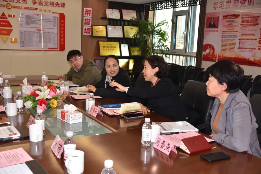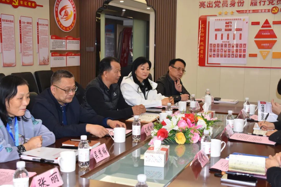 张一卫一行听取了相关负责人对青岛市湖南商会、李村街道商会关于商会服务体系架构及运营情况和党建工作的介绍。