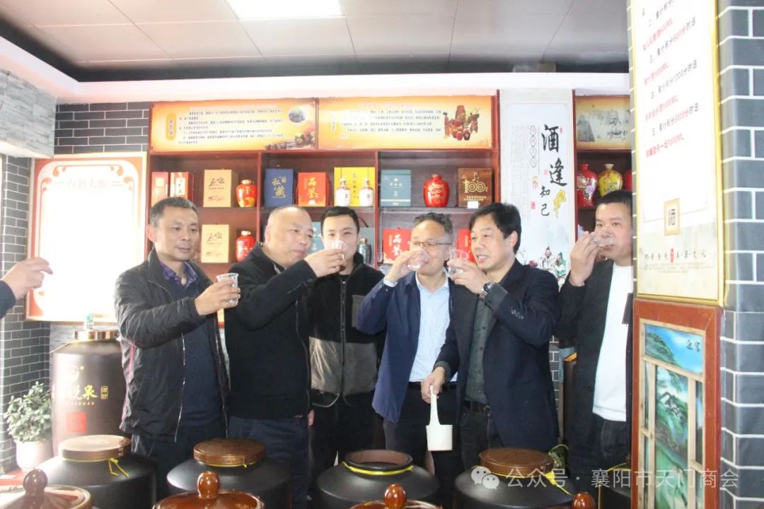 走访的第一站是二组副组长张泽舫位于宜城市中心的门市部——百悦泉酒都鄂西北总店,张总对商会领导一行的到来表示热烈的欢迎,和大家介绍了百悦泉酒的特色及经营销售情况,并邀请大家现场品尝了百悦泉酒。谢军会长高度赞扬了张泽舫总经理的经营成就,在时下经济下滑、市场竞争激烈的情况下,拥有高品质的产品及多年打下的市场基础,成为了行业内的佼佼者,值得大家学习,并强调,在市场经济的浪潮中,一定要注重品牌建设。