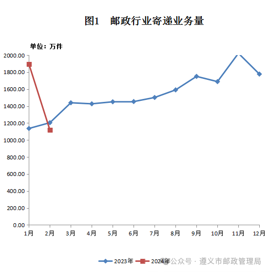 2.受春节假期因素影响,今年2月份邮政行业同比增速下降。