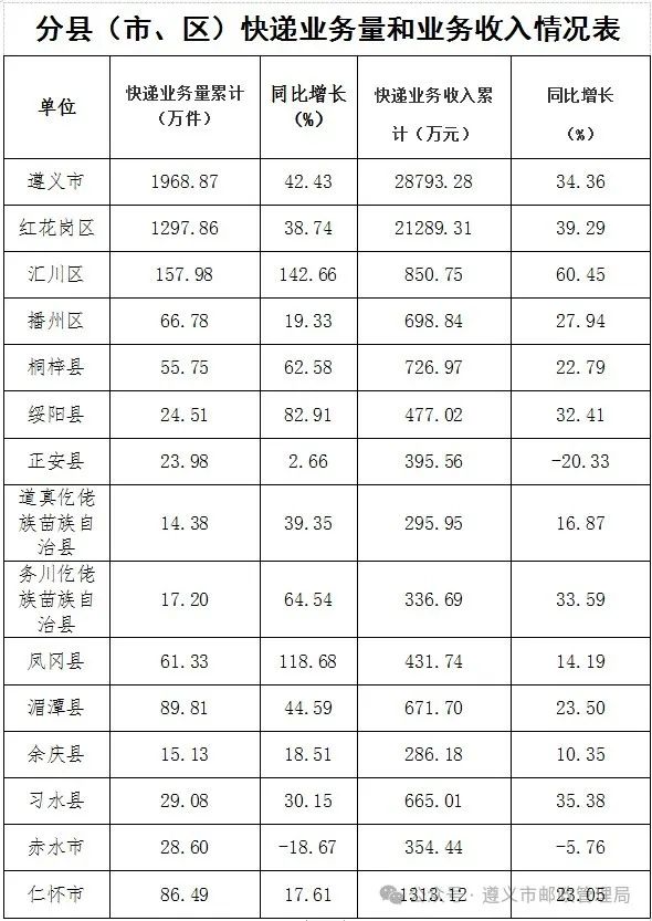 1.部分邮政快递企业调整快递业务口径,快递业务同比增速按可比口径计算。