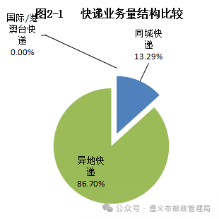 1-2月,同城、异地、国际/港澳台快递业务量分别占全部快递业务量的14.34%、85.65%和0.01%;业务收入分别占全部快递收入的6.06%、53.95%和0.02%。与去年同期相比,同城快递业务量的比重增长0.41个百分点,异地快递业务量的比重下降0.42个百分点,国际/港澳台业务量的基本保持一致。