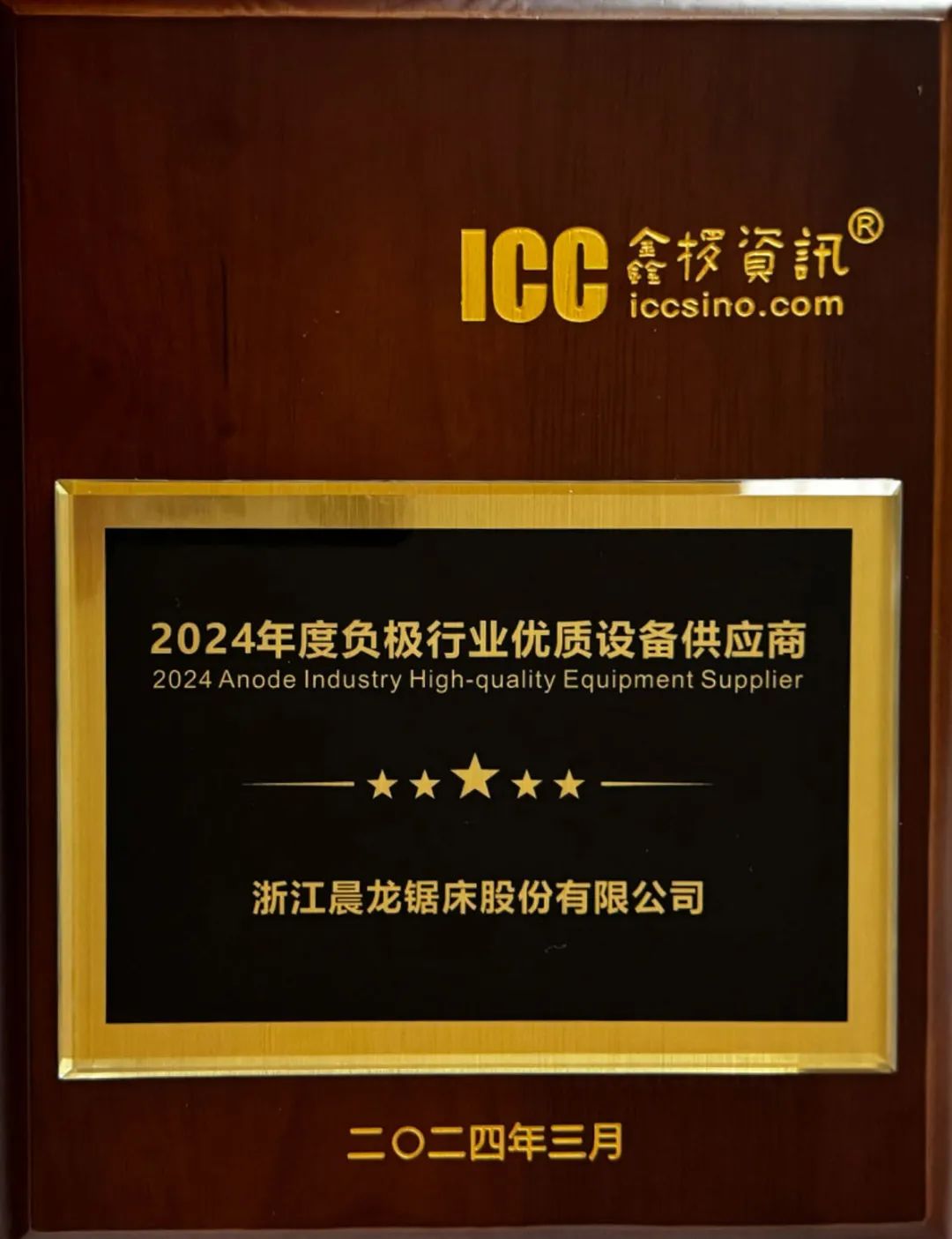 晨龙锯床荣获“2024年度负极行业优质设备供应商”