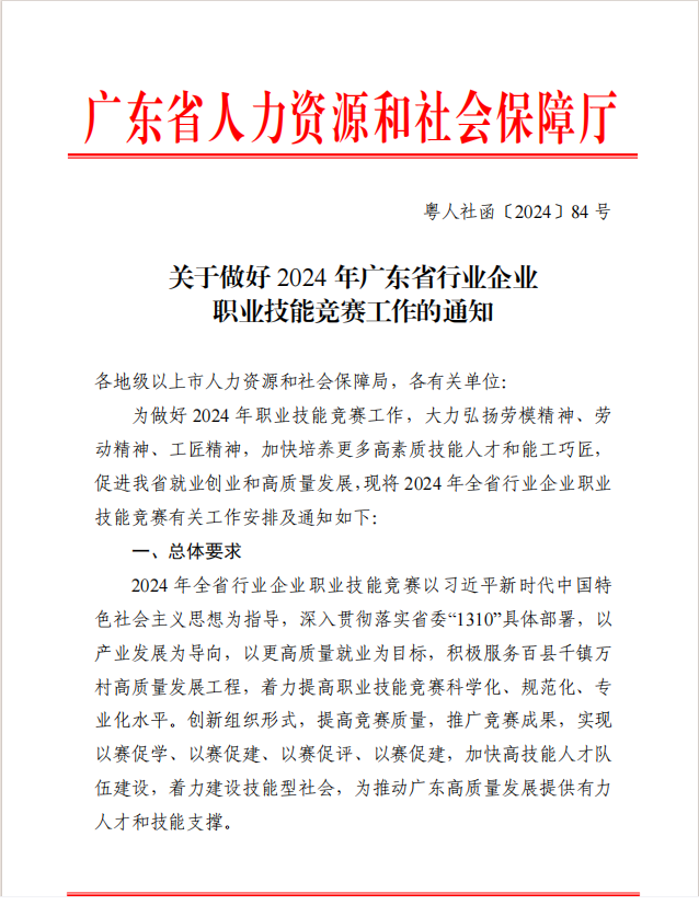 【竞赛】成功入选广东省 2024 年行业企业职业技能竞赛计划