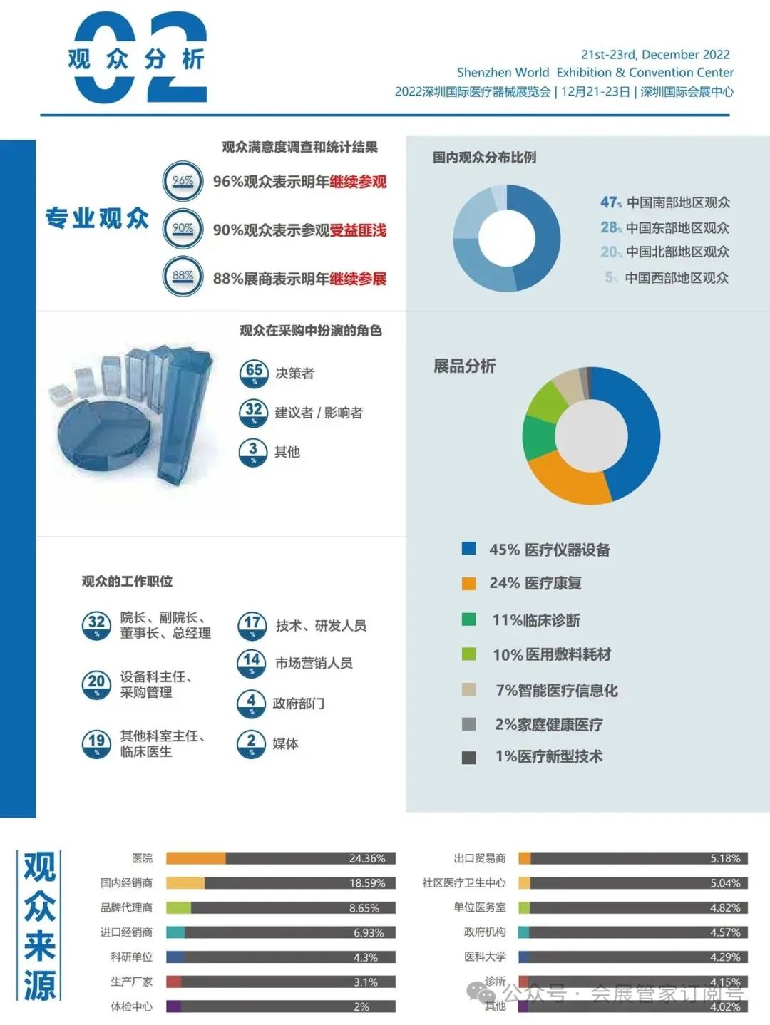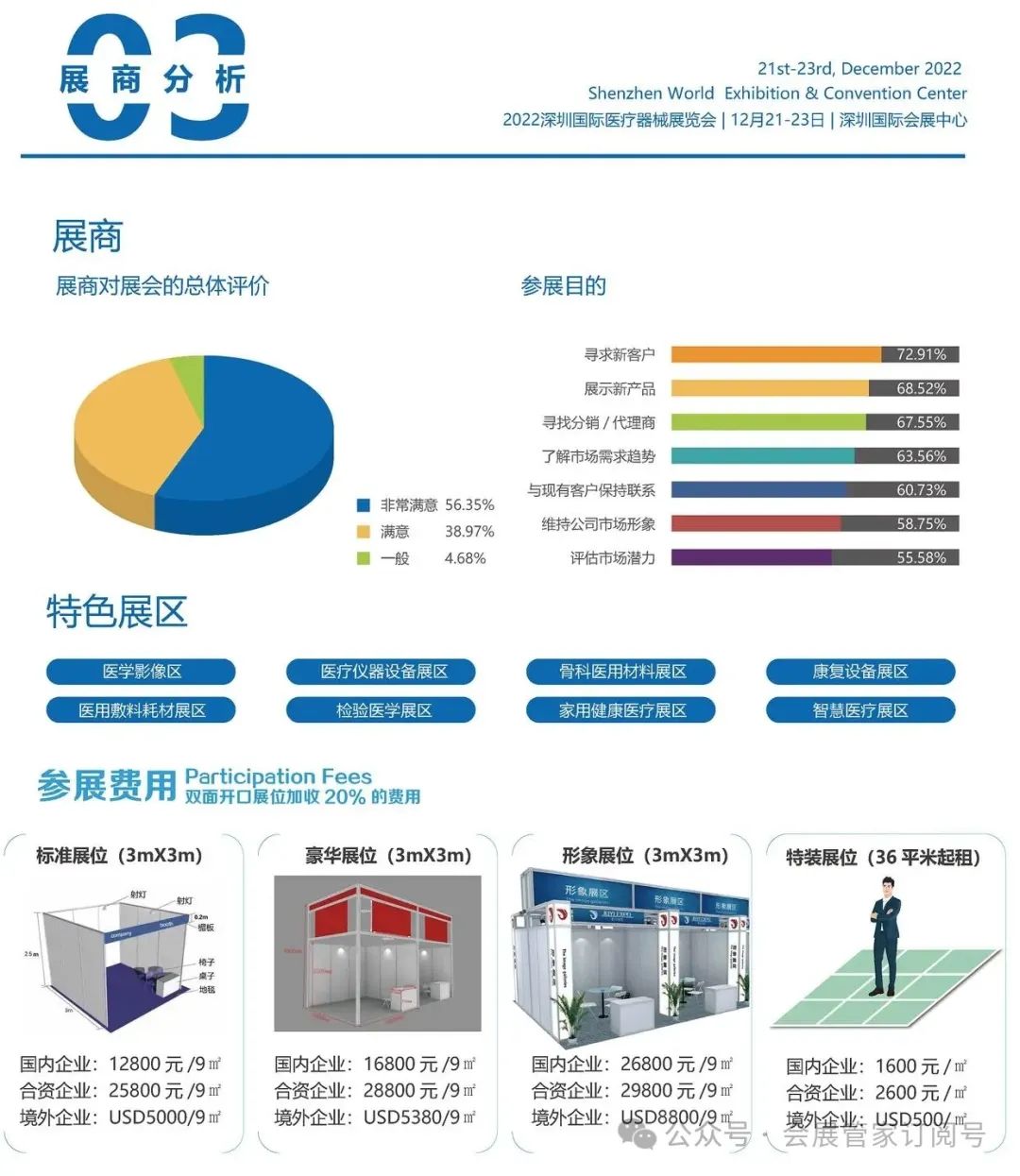 深圳国际医疗器械展览会(CMEH)上届展会总面积30000平方米,参展企业600家,参展人数达30000人。每年吸引数万名海内外医疗器械行业的贸易人士、研究机构、政府部门、医院采购和管理部门等专业人士前来参观。