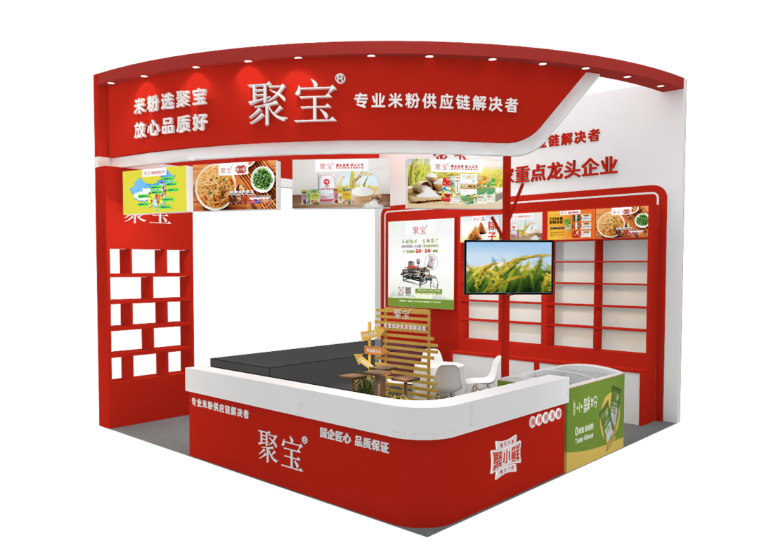 而对于聚宝米粉来说,绘景国际展览则设计了一个充满活力和创意的展台。通过色彩的运用和展品的陈列,绘景国际展览成功地将聚宝米粉的品牌形象和产品特点传递给每一位参观者,进一步巩固了其在市场中的地位。