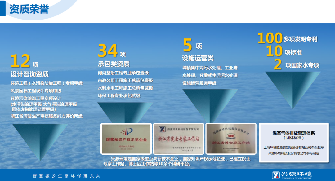 兴源环境是国家级重点高新技术企业,国家知识产权示范企业,已建立院士专家工作站、博士后工作站等10余个科研平台。