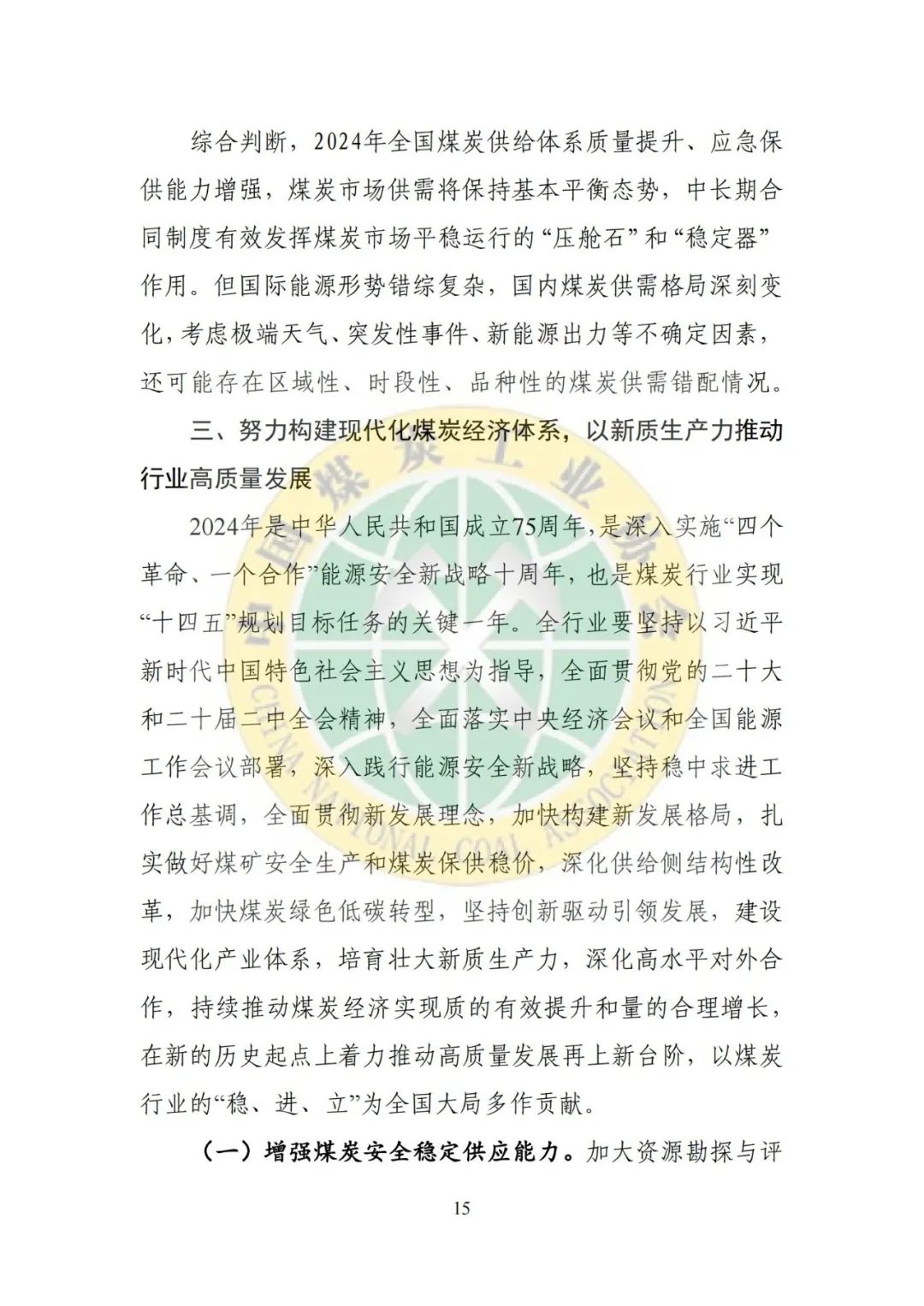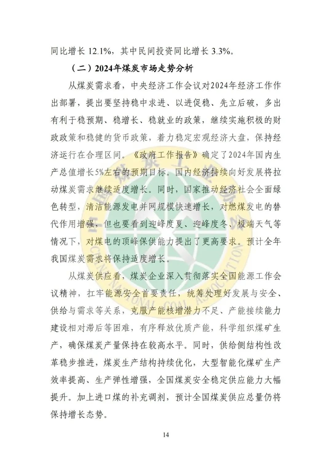 《报告》预测,2024年全国煤炭供应体系质量提升、应急保供能力增强,煤炭市场供需将保持基本稳定。尽管如此,也可能因为出现极端天气、突发事件、新能源出力等不确定性因素,导致出现区域性、时段性或者品种性的煤炭供需错配的情况。