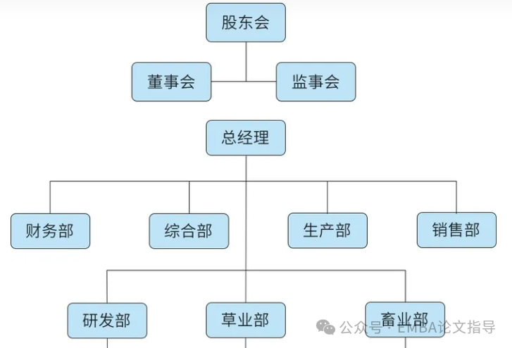 我们给出组织结构图后,还应简要分析企业组织结构的特点、主要业务单位和部门职能,为后面分析问题奠定基础。
