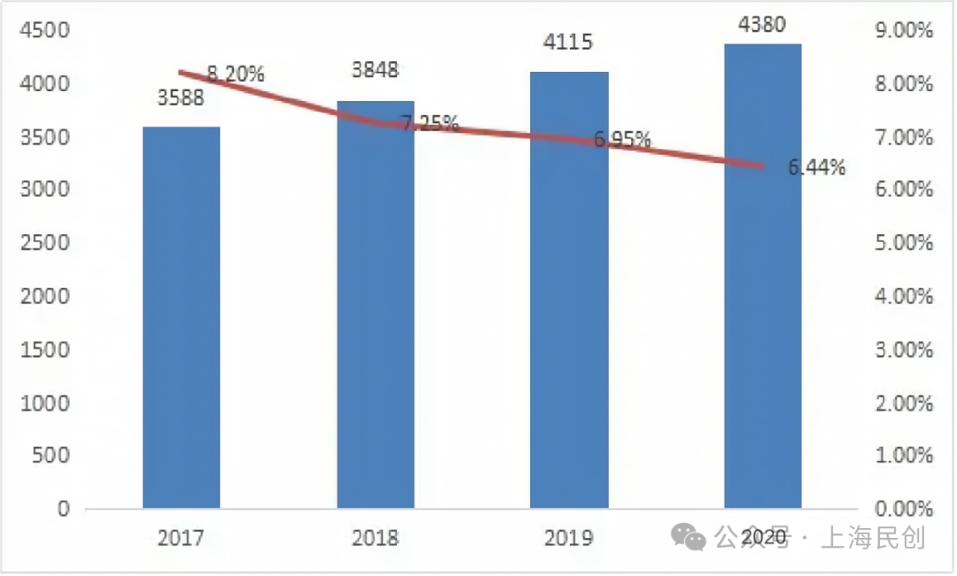 2017-2020年全球保健品行业市场规模(单位:亿美元,%)
