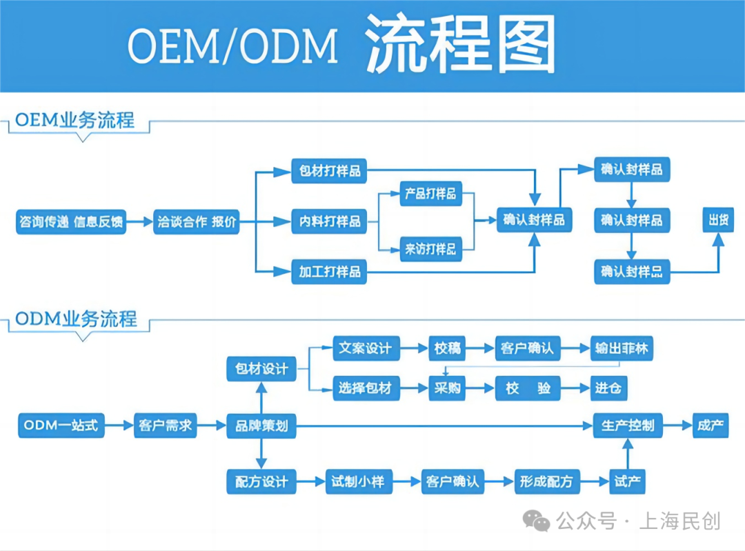 中游生产商与品牌商和合作主要分为OEM、ODM两种模式。大型企业出于对产品快速迭代的需求和降低风险和成本的考量,往往寻求专业化分工。初创公司资金实力较弱,往往不具备大规模生产能力,因而寻求代工降低准入门槛。生产商在生产环节外通常熟悉备案流程,可以替品牌商办理注册或备案服务。另外还有具有自主研发生产能力的品牌商或具有自主品牌的生产商从通过OBM模式在发挥设计制造优势的同时自行开拓市场。
