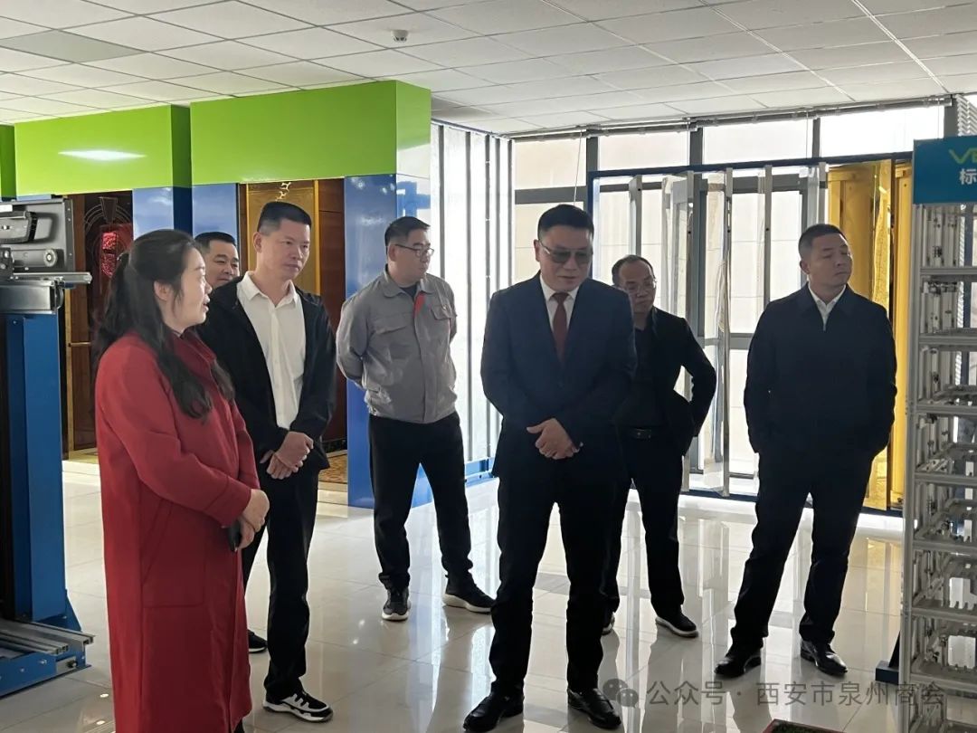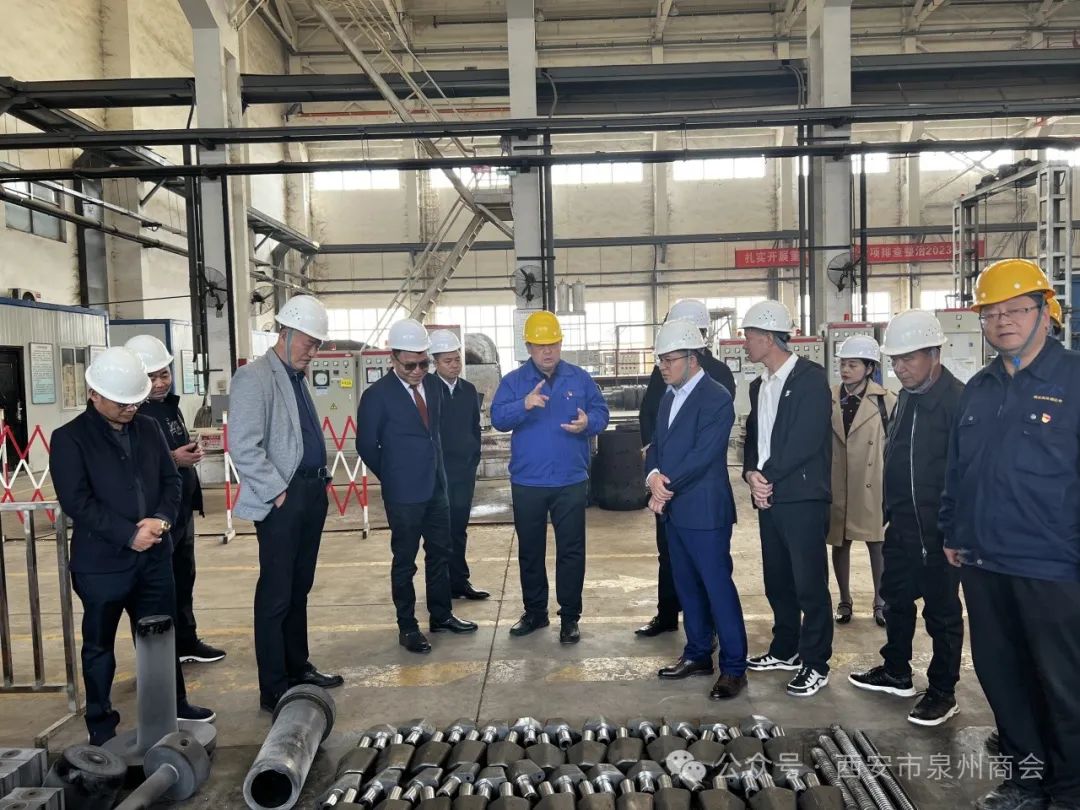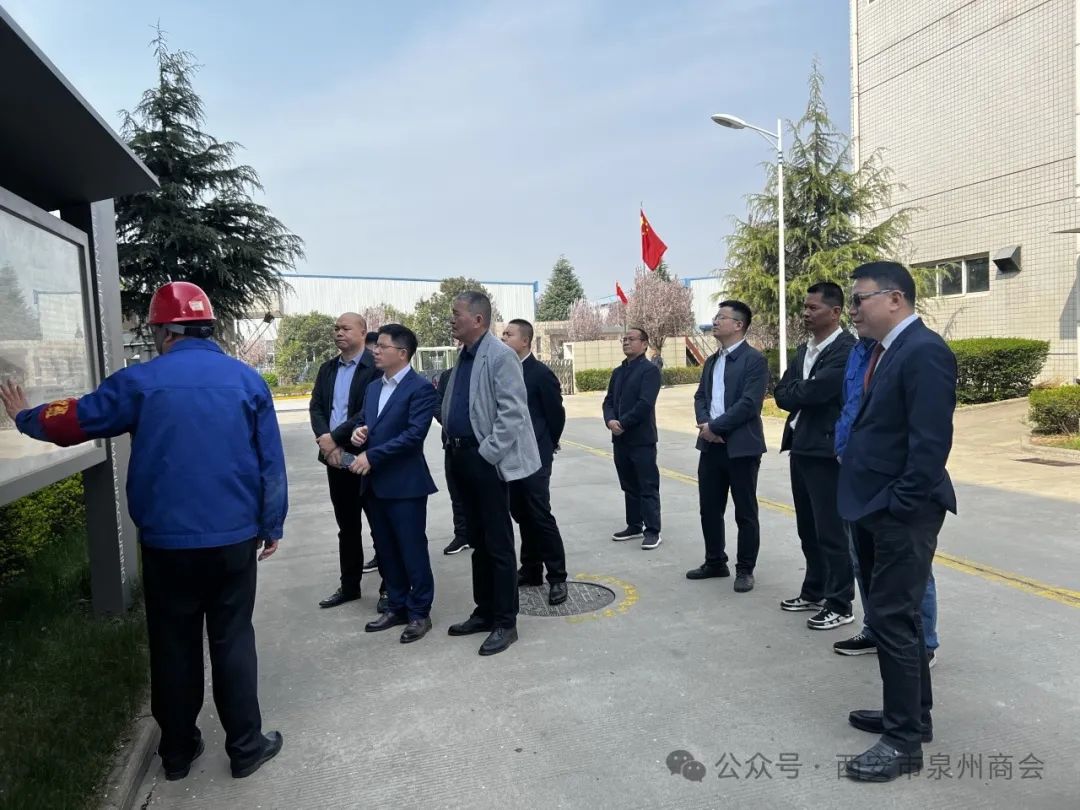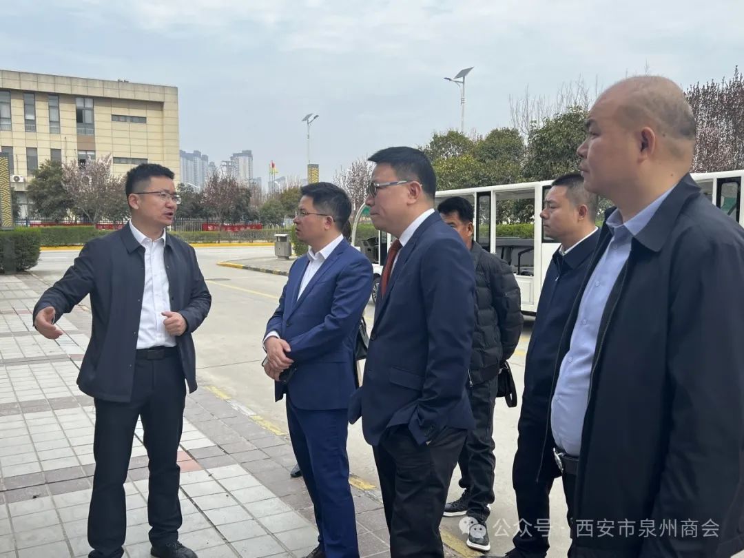 2024年3月27日上午,西安市泉州商会创会会长陈勇,会长许天才带队,执行会长钟贵彬(本月值班会长)、戴振山,常务副会长吕鸣发、尤栋梁、陈朝滨,副会长张荣财,会员杨志勇一同参观泾河产业园,深入了解该园区的生产运营情况。