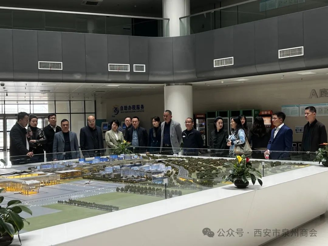 在管委会工作人员的陪同下,商会成员们首先参观了展示厅,通过模型、宣传片等形式,深入了解了新区的战略规划、产业布局以及发展成果。大家纷纷表示,西咸新区作为国家级新区,其独特的地理优势和政策支持为商会成员们提供了广阔的发展空间和无限商机。
