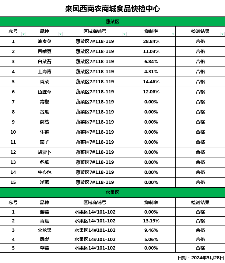 据农业农村部监测,3月27日“农产品批发价格200指数”为123.36,比前天下降0.04个点,“菜篮子”产品批发价格指数为124.58,比前天下降0.03个点。截至昨日14:00时,全国农产品批发市场猪肉平均价格为20.34元/公斤,比前天下降0.9%;牛肉67.93元/公斤,比前天下降0.8%;羊肉63.60元/公斤,比前天下降0.5%;鸡蛋8.49元/公斤,比前天上升0.2%;白条鸡17.94元/公斤,比前天上升1.4%。重点监测的28种蔬菜平均价格为5.07元/公斤,比前天上升0.2%;重点监测的6种水果平均价格为7.36元/公斤,比前天下降0.9%。鲫鱼18.39元/公斤,比前天下降1.0%;鲤鱼14.63元/公斤,比前天上升1.2%;白鲢鱼9.71元/公斤,比前天下降1.2%;大带鱼39.96元/公斤,比前天下降4.0%。