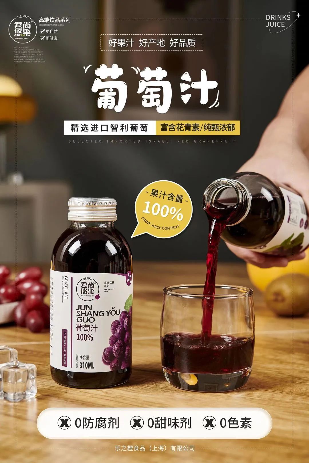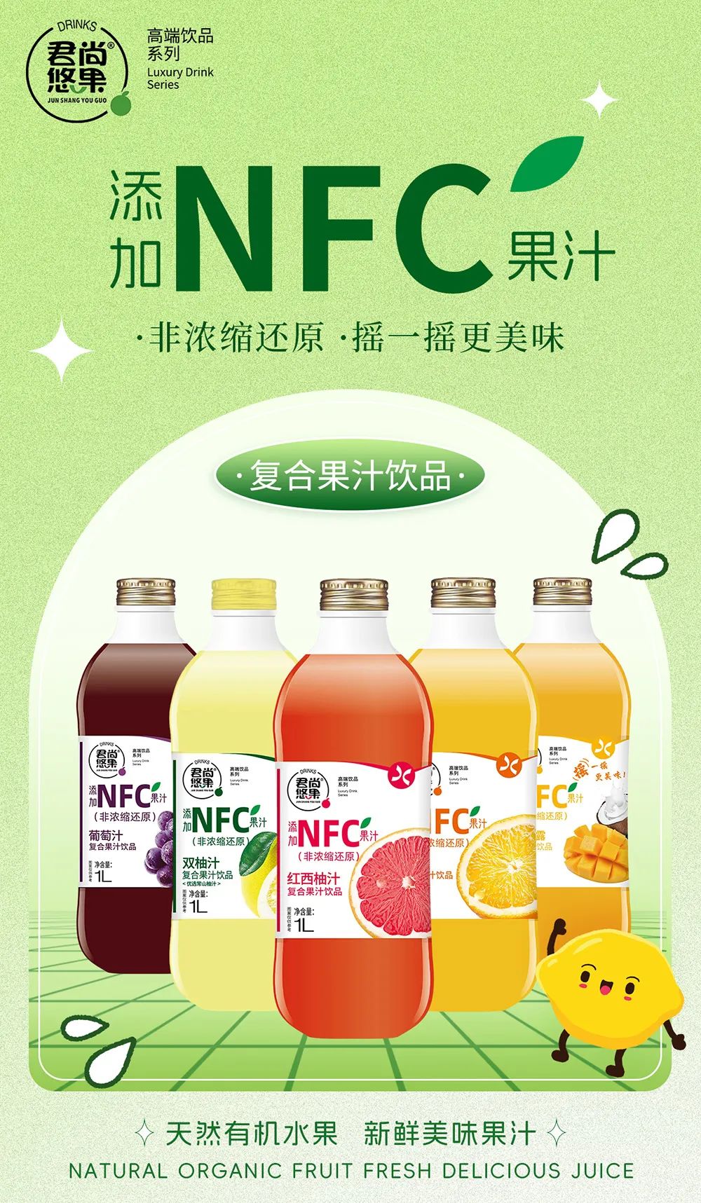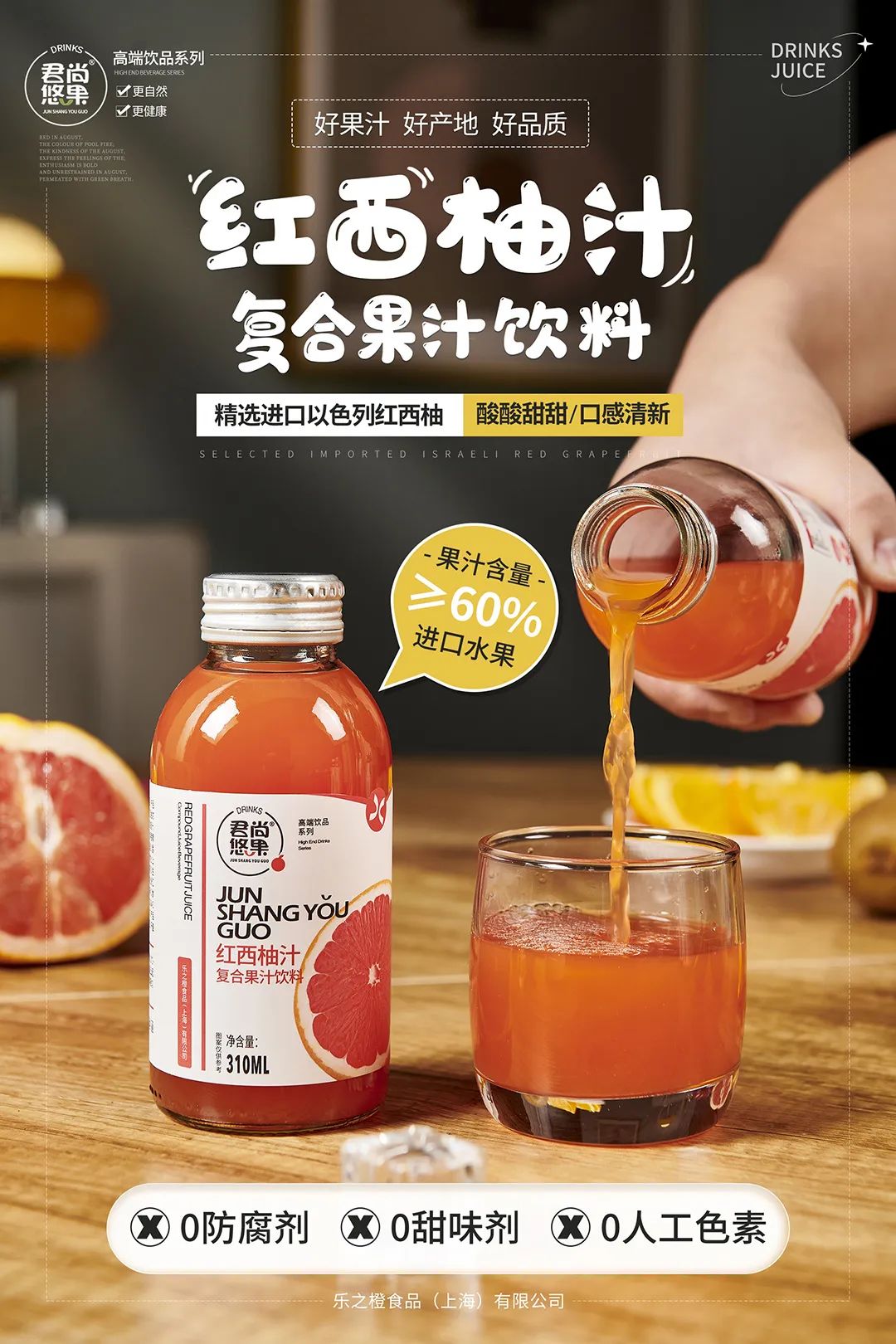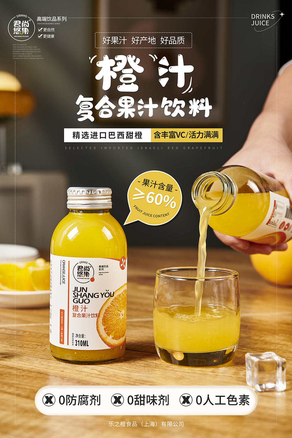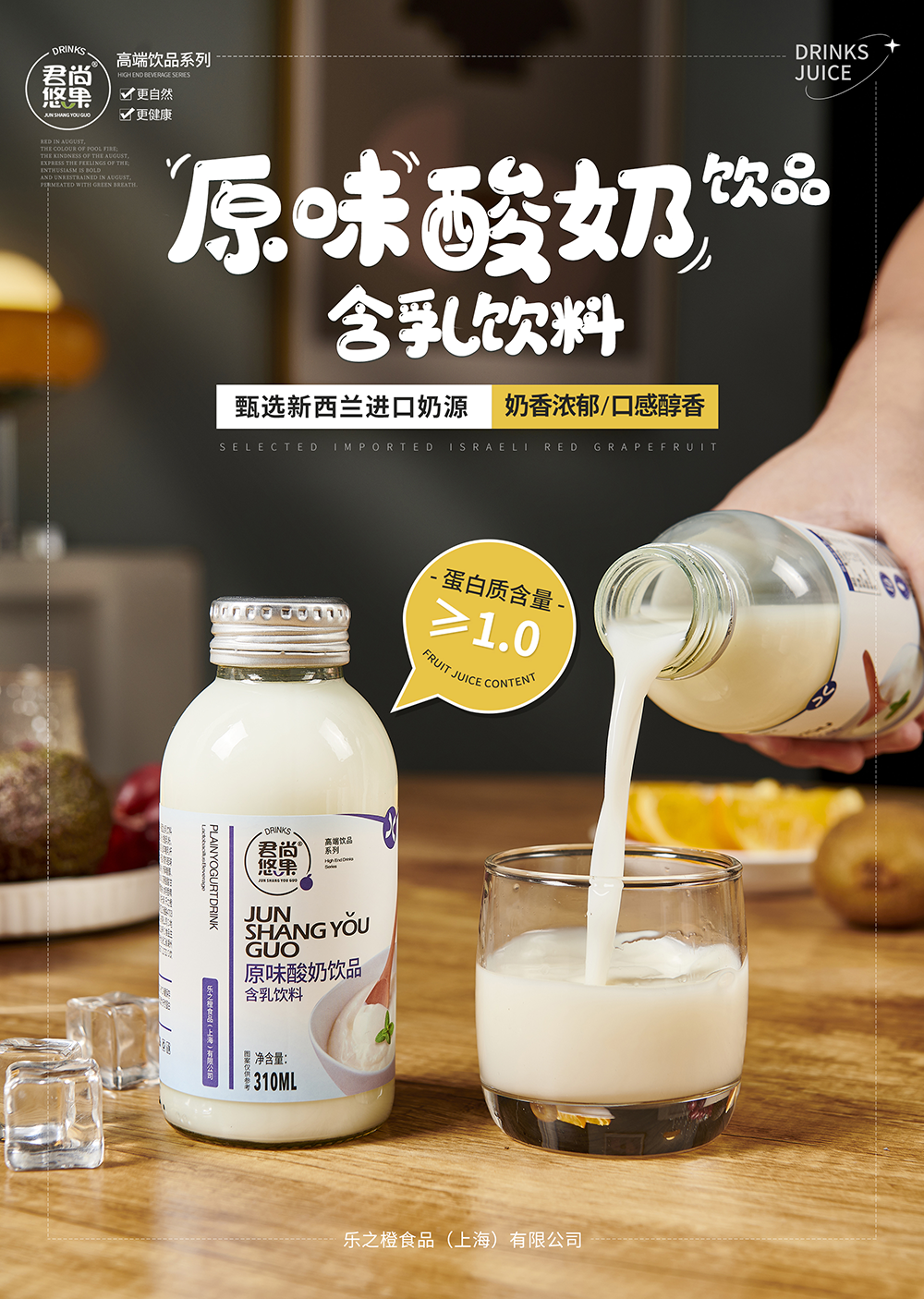 君尚悠果品牌隶属于乐之橙食品(上海)有限公司,公司成立于2015年,是一家专业从事食品饮料研发,创新,营销于一体的新型企业,主营100%果汁,复合果汁,乳酸菌,酸奶饮品等系列,致力于打造健康、高端的特色饮品,自产品上市以来深受广大消费者的青睐。