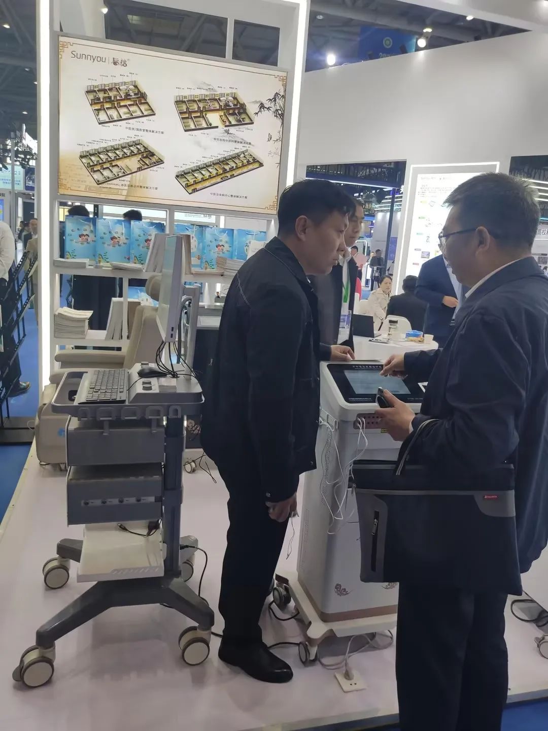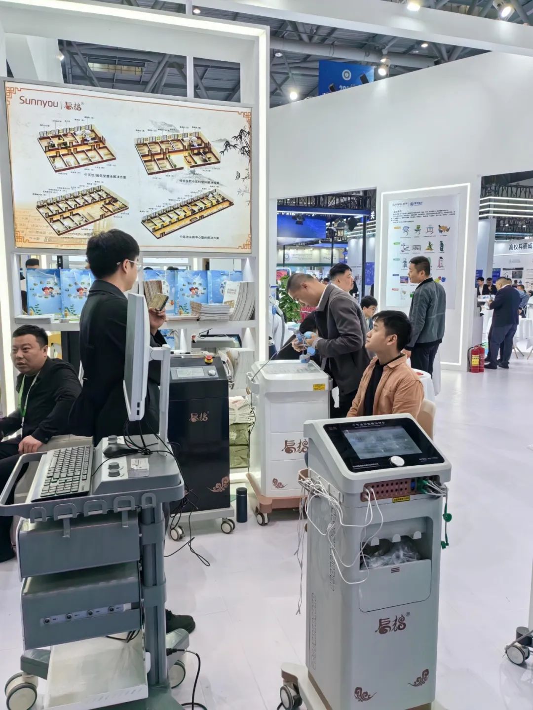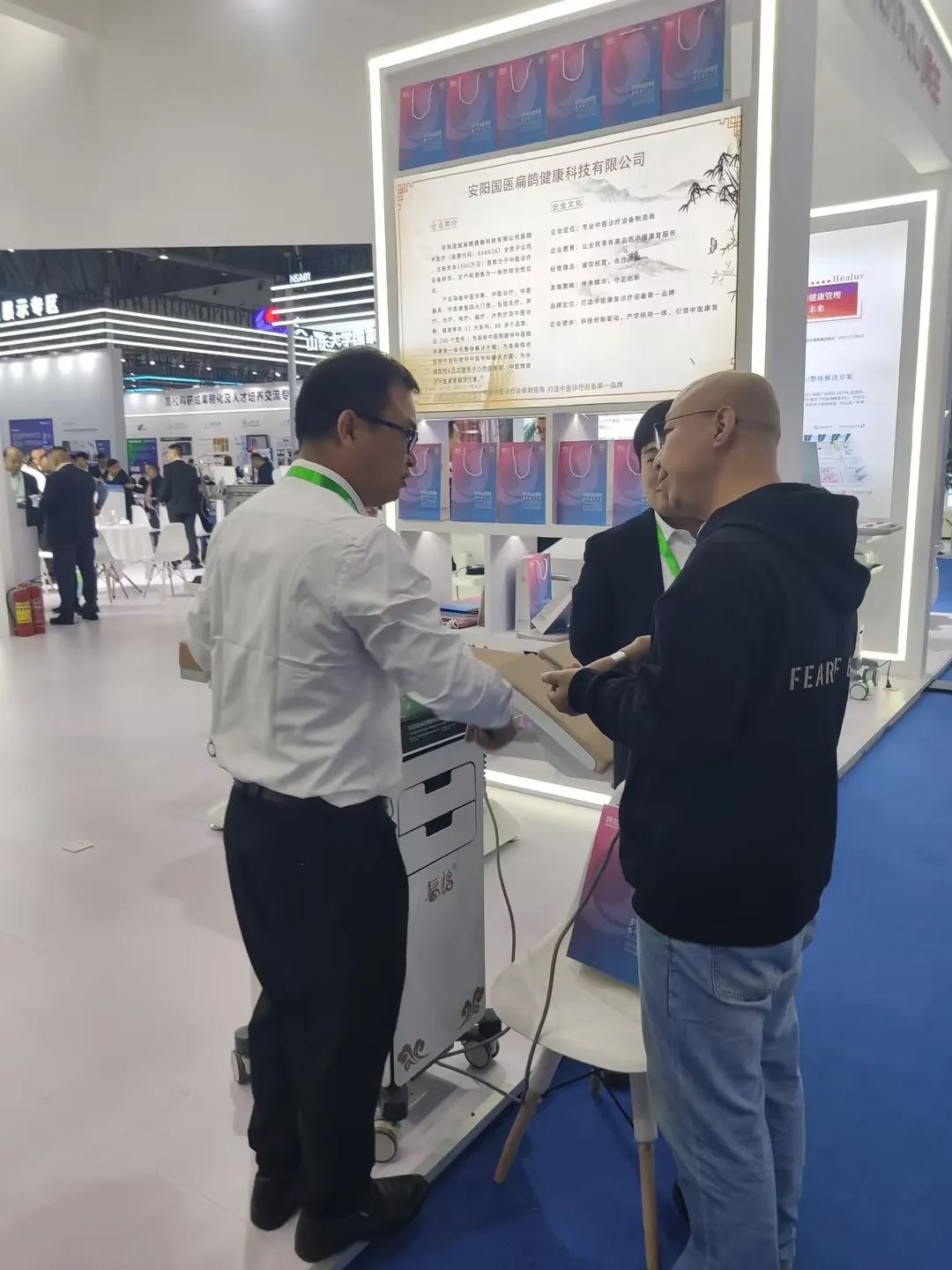 展会第一天,国医扁鹊工作人员早早来到展位,为前来了解的客户提供专业且耐心的讲解,使客户熟悉产品的使用方法和优势,获得了客户的好评。
