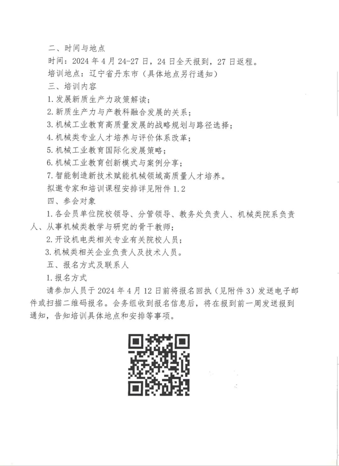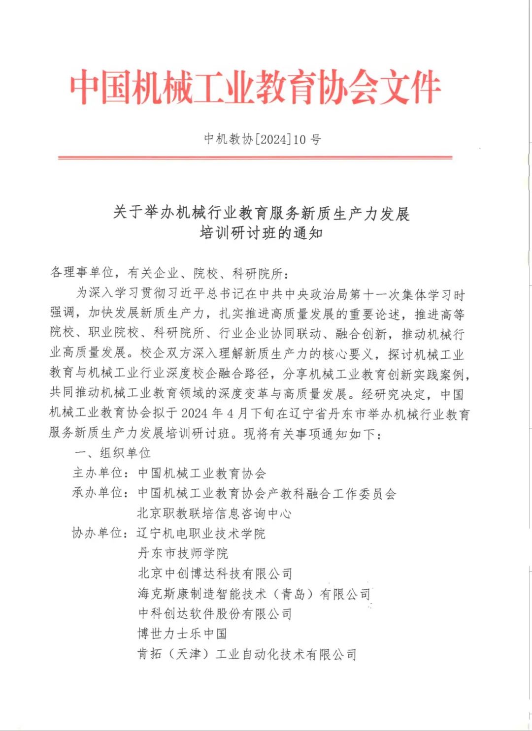 关于举办机械行业教育服务新质生产力发展培训研讨班的通知