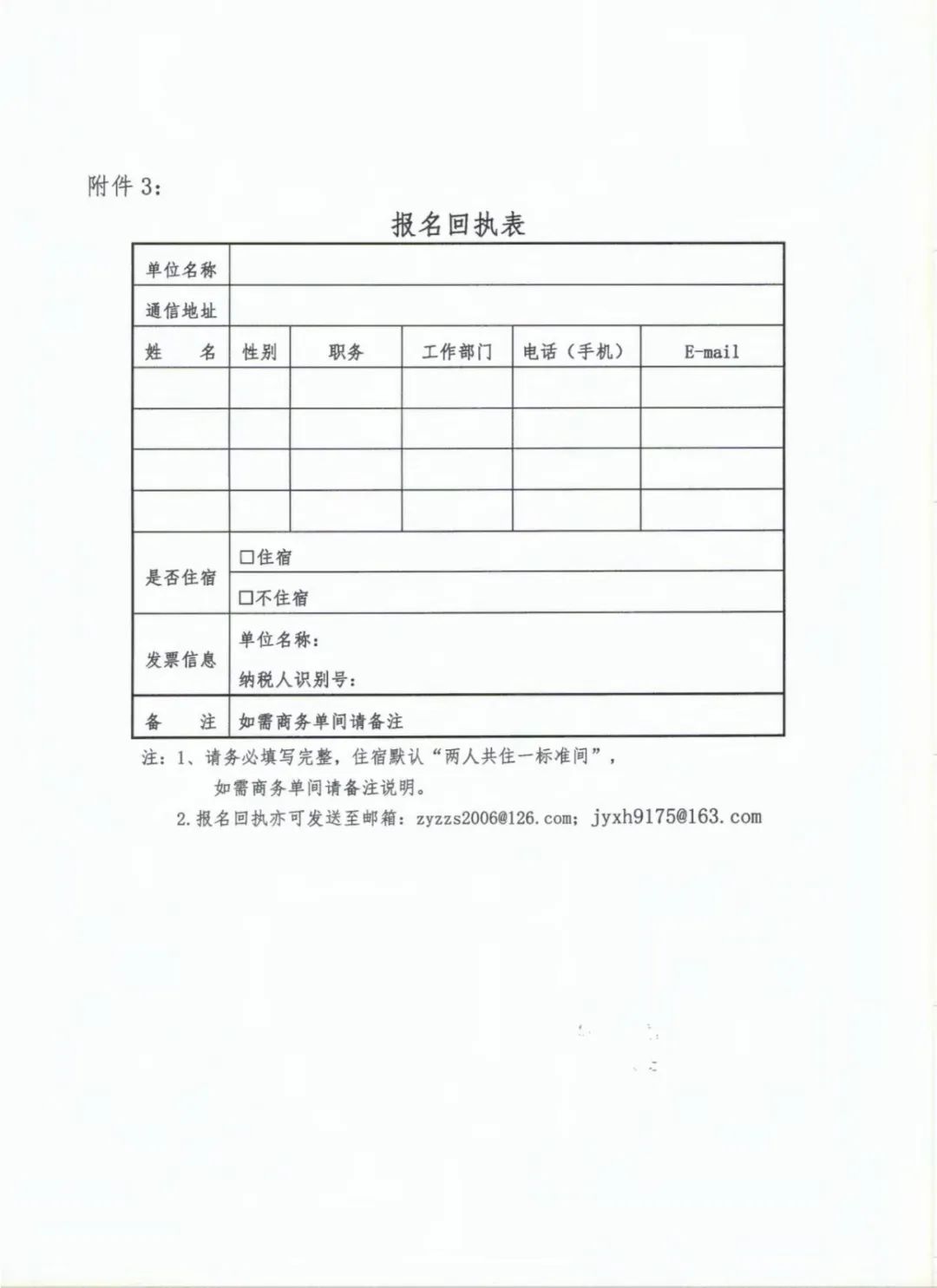 2.报名回执亦可发送至邮箱:zyzzs2006@126.com;jyxh9175@163.com