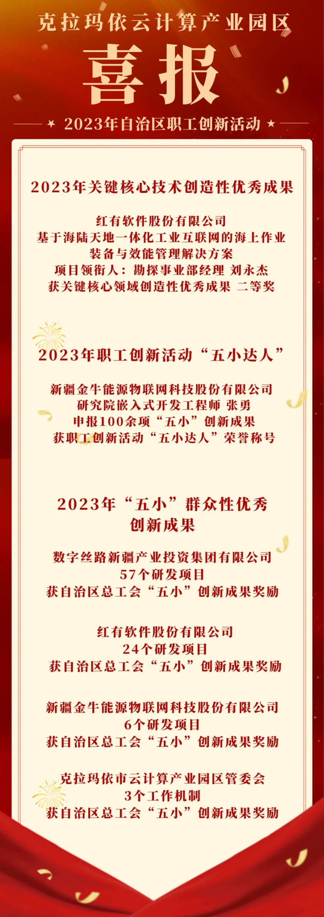 喜报!克拉玛依市云计算产业园区企业喜获2023年自治区职工创新活动多项荣誉