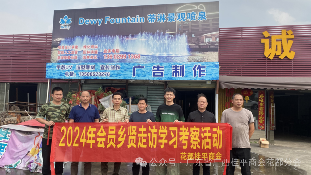 2024年3月24日广东省广西桂平商会花都分会会长韦焕忠携陈家德、曾嘉钱、黄文奇等成员先后走访:鸿发不锈钢有限责任公司(陈兆贵),广州金铭广告装饰有限公(梁金铭),广州宾菲貓皮具有限公司(杨金水),广州阿尔法口腔门诊部(姚邦朝)