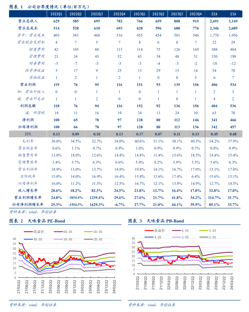 具体内容详见华创证券研究所3月28日发布的报告《天味食品(603317)2023年报点评:盈利延续改善,分红超出预期》